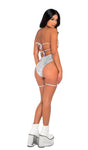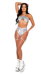 Two-Tone Iridescent Zip-Up Vinyl Shorts with Mesh Panel and Attached Garters