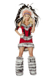 Includes Mini Dress with Fur and Lace-up Front Detail, Headband with Feather, and Lace-up Armband