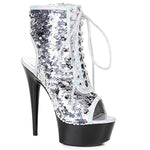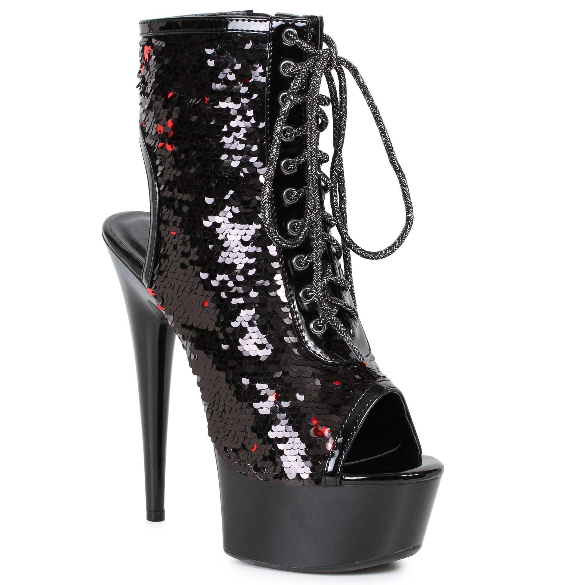 6" Heel Peep Toe Sequined Ankle Bootie.