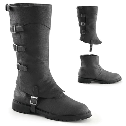 1 1/2" Flat Heel Men's Buckled Strap Knee High Cuffed Boot