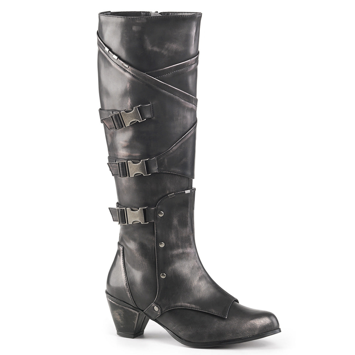 2 1/2" Block Heel Knee High Boot W/ Buckle Strap, Side Zip