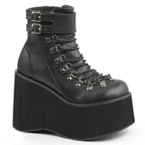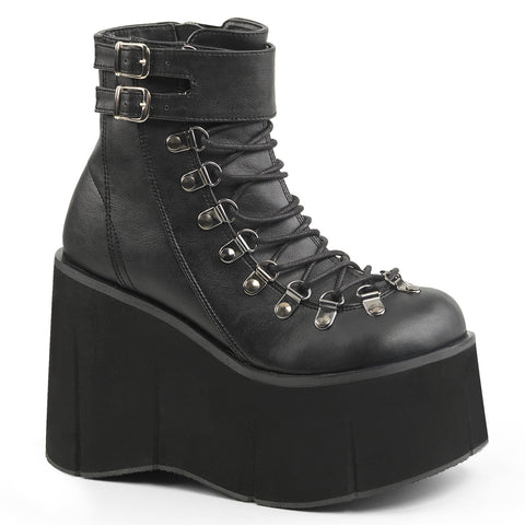 Elevate your style with the KERA-21, a 4 1/2" platform ankle boot. The front lacing detail and adjustable dual buckle ankle cuff add a touch of edginess, while the side zip closure provides convenience. Step out into style with the KERA-21.