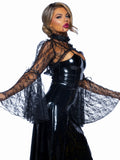 Take your place as queen of the vampires in this seriously sexy Victorian Lace Shrug by Leg Avenue. The gorgeous goth-inspired top features a high neck collar, woven cord buttons, and flowing bell sleeves. Complete your vampire costume or create a DIY sexy Halloween costumes look.