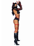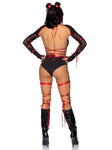 Become one with the shadows in the stealthy Lethal Ninja costume by Leg Avenue. Daring and deadly, this 5 piece sexy ninja costume includes a strappy wrap around bra top with attached mesh gloved shrug, V-cut bottoms, leg wraps, face mask, and matching hair ties. This sexy women's Halloween costume pairs perfectly with other ninja costumes for a deadly group costume. Weapons not included.