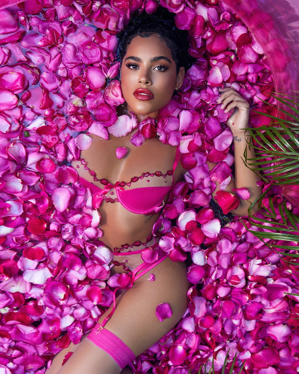 - Lips & hearts embroidered illusion tulle