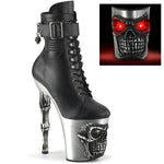 8" Finger Bone Heel, 4" Skull PF LED Ankle Boot, Side Zip