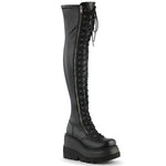 4 1/2" (114mm) Wedge Platform Lace-Up Stretch Thigh-High Boot, Full Length Outside Metal Zip Closure.