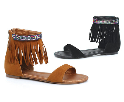 Tribal fringe native flat sandal With embroidered details